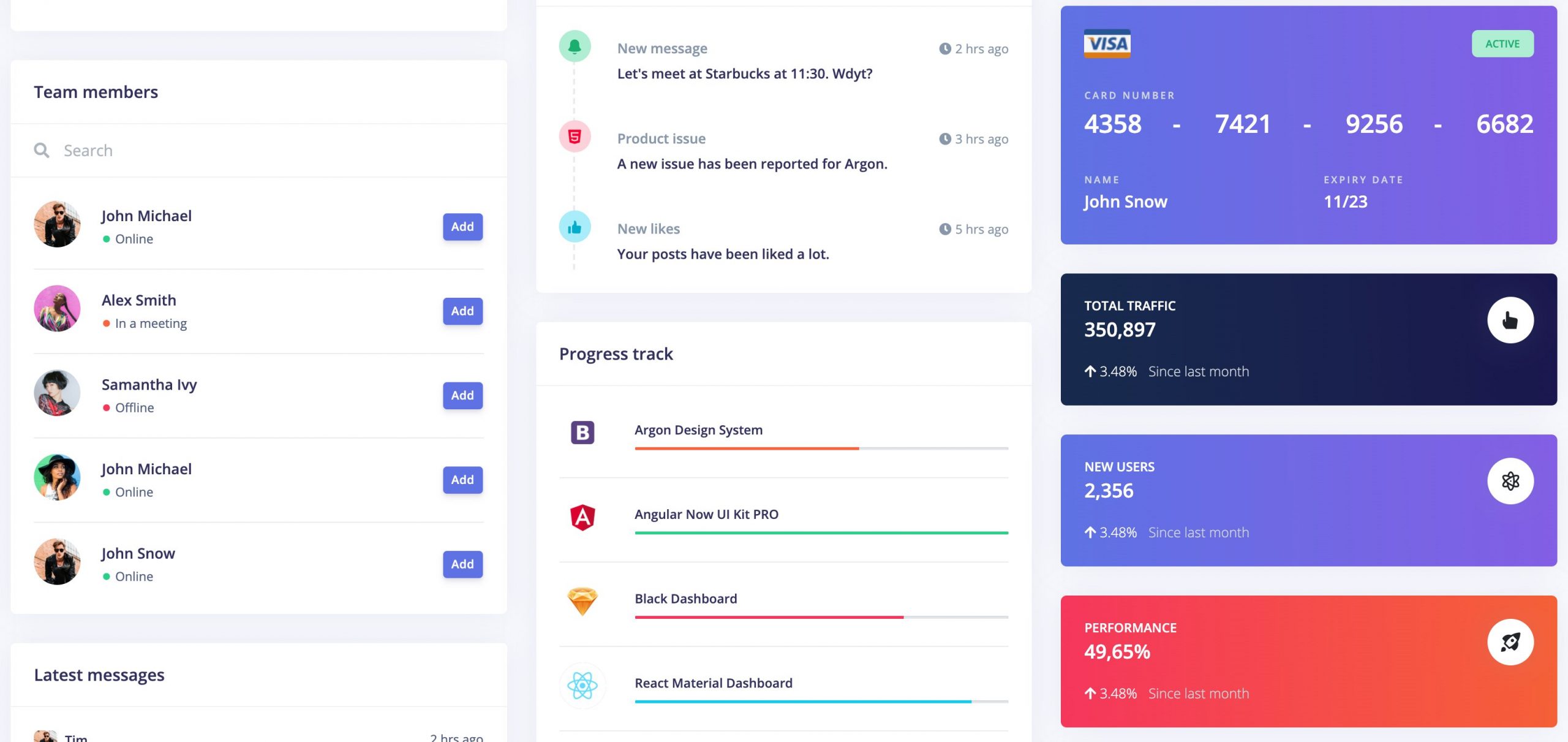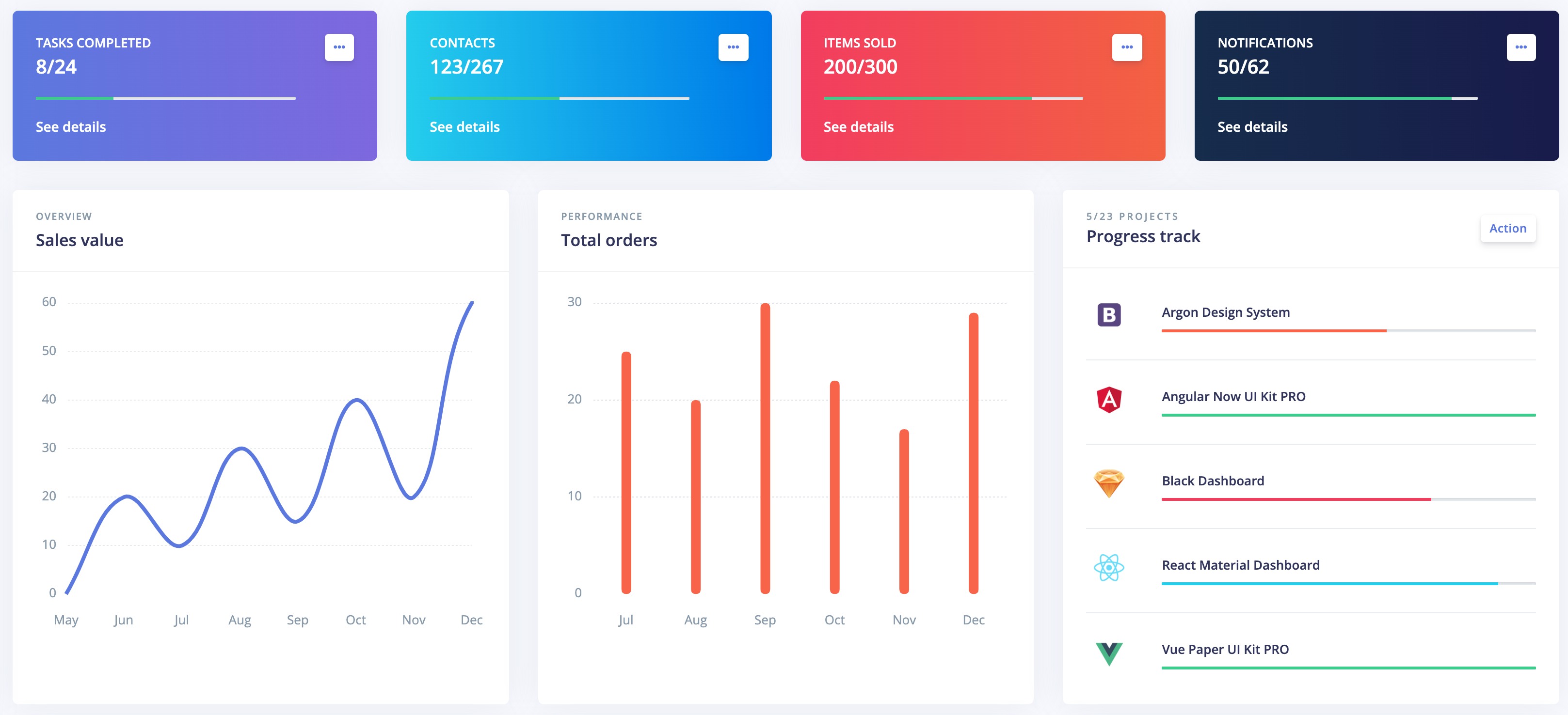 Argon is a premium dashboard template for Bootstrap 4 which includes more than 200 unique and fully coded components that are easy to use, combine and modify.